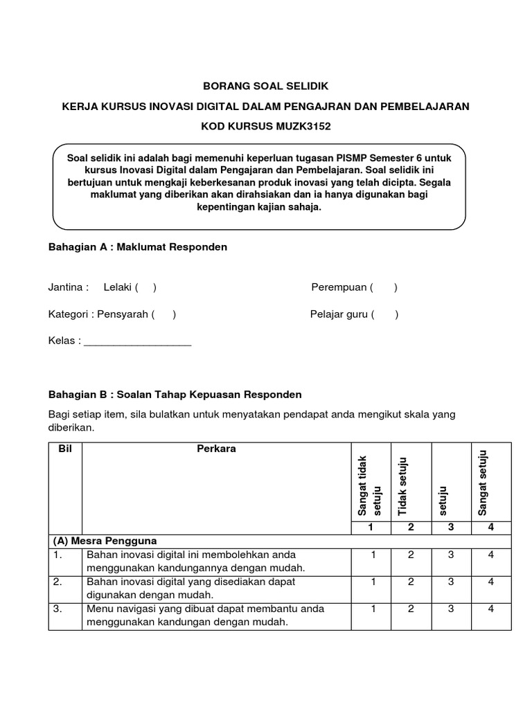 Contoh Borang Soal Selidik 2022 Word Pdf Geografi Pt3 Pelajar Universiti Produk Portal Cikgu