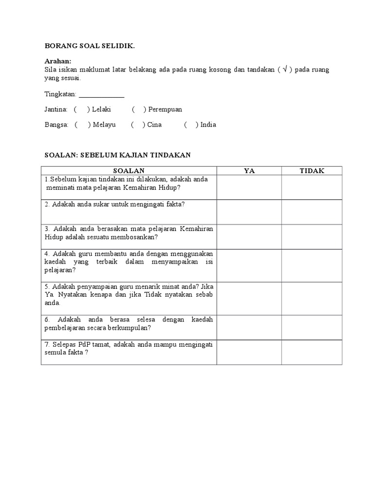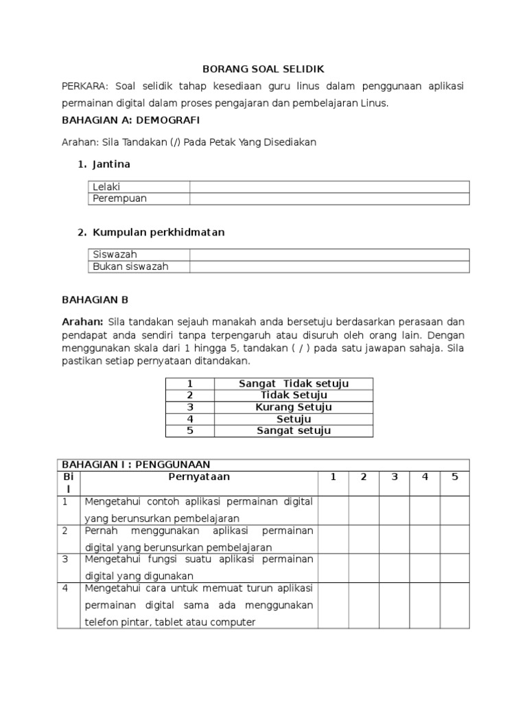 Contoh Borang Soal Selidik Pdf